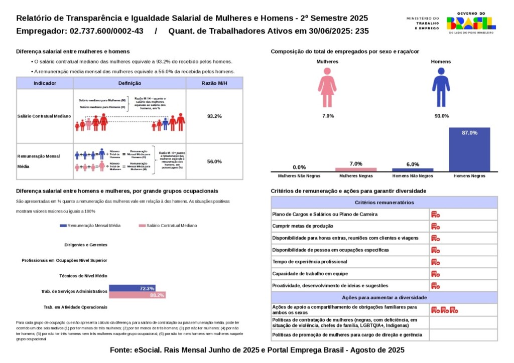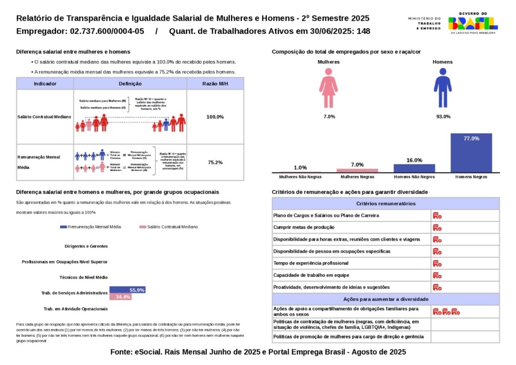 Relatório de Transparência e Igualdade Salarial de Mulheres e Homens.
